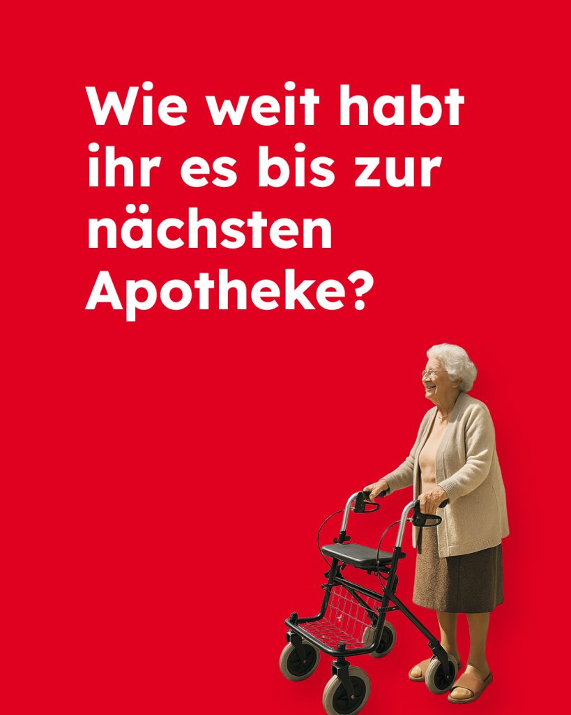 Mit jeder Apotheke, die schließt, geht den Menschen vor Ort Nähe, Akuthilfe und Sicherheit verloren. Der Weg zur nächsten Apotheke wird länger. Das ist vor allem im Notfall und für alle, die wenig mobil sind, ein Problem.